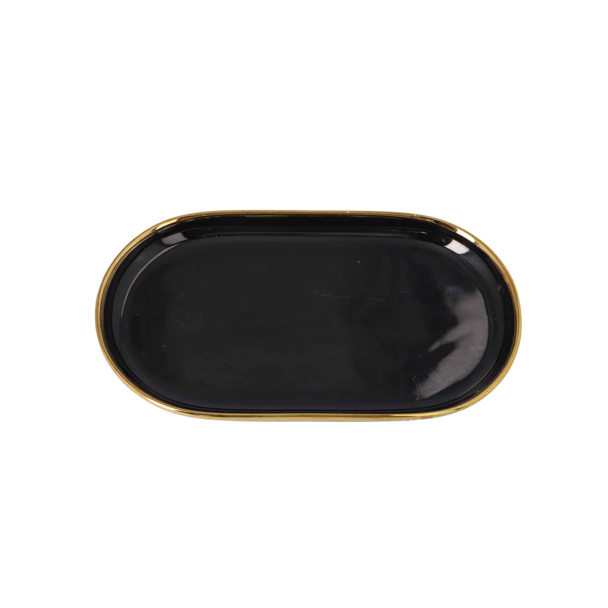 Black Ceramic Fish Serving Platter With Gold Rim 30.9cm