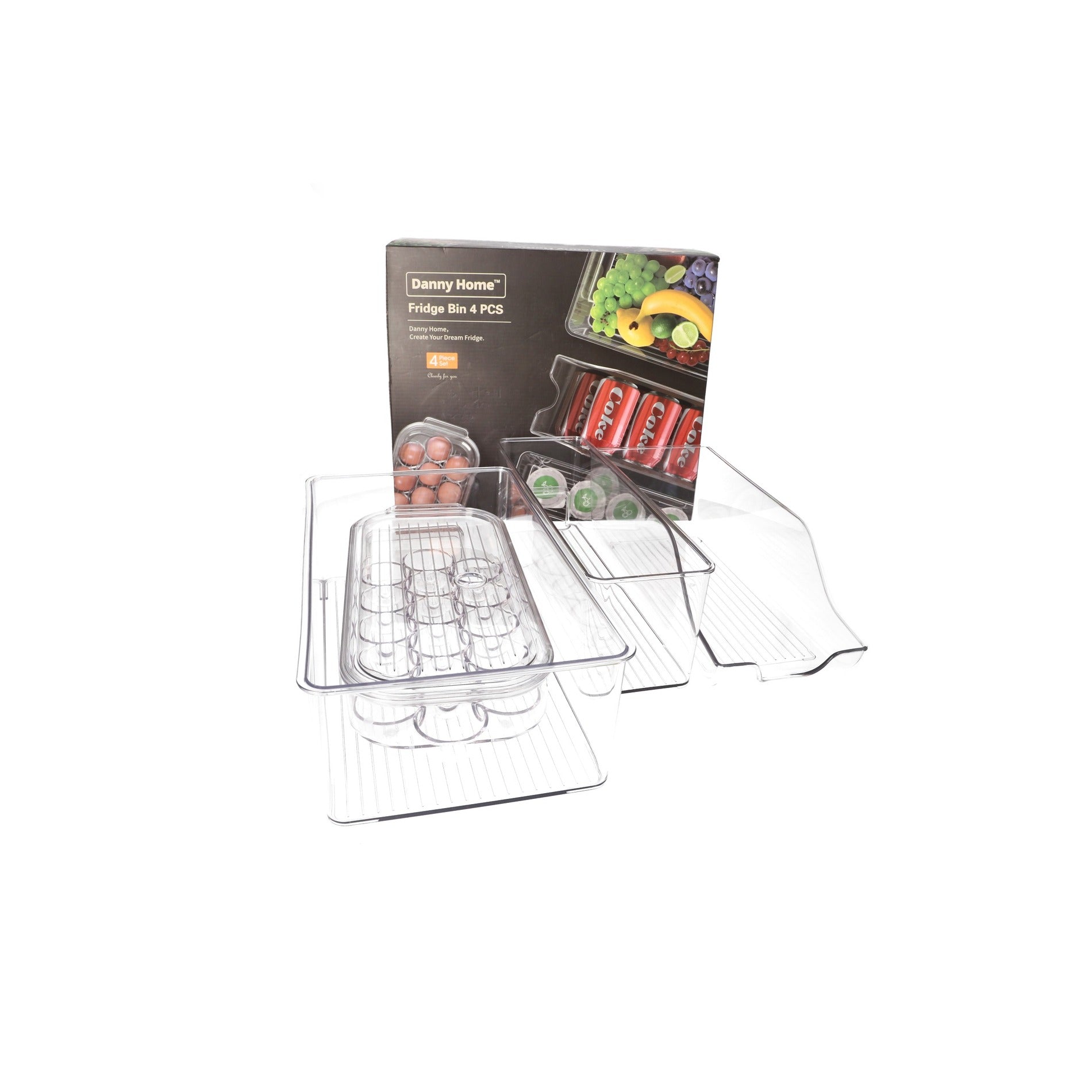Clear PET Plastic Rectangular Refrigerator Storage Boxes 4Pcs