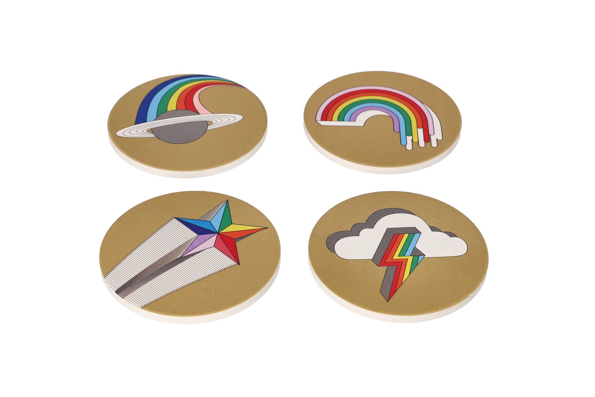 Porcelain Absorbent Rainbow Printed Coasters 10.1cm 4pcs