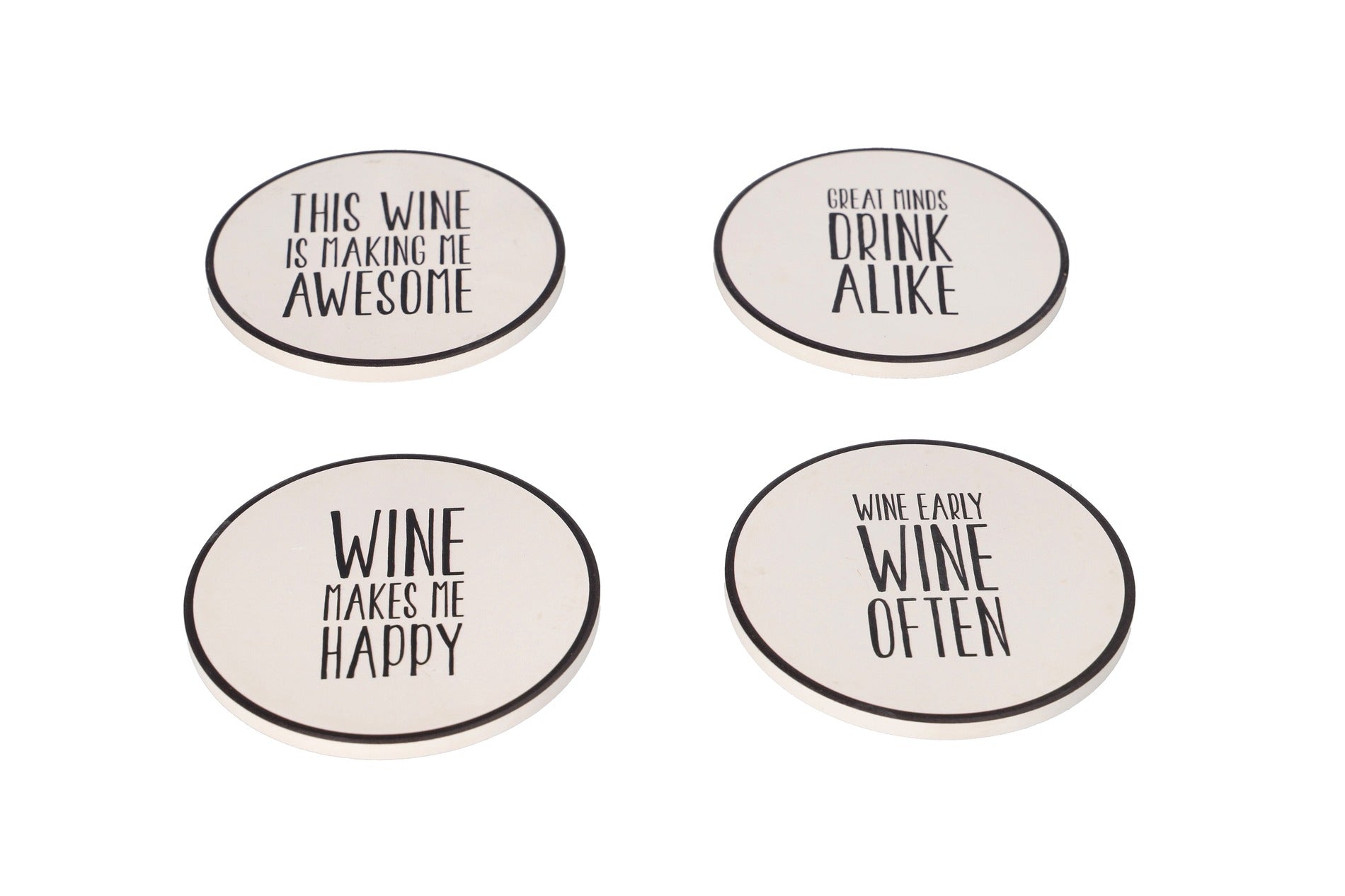 Porcelain Absorbent Wine Quotes Printed Coasters 10.1cm 4pcs